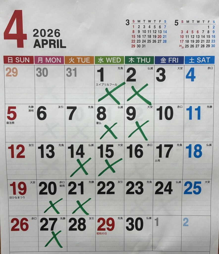 都合により営業日が変更