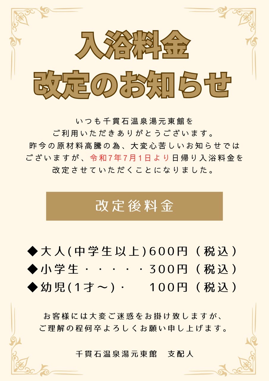 千貫石温泉湯元東館の入浴料が
